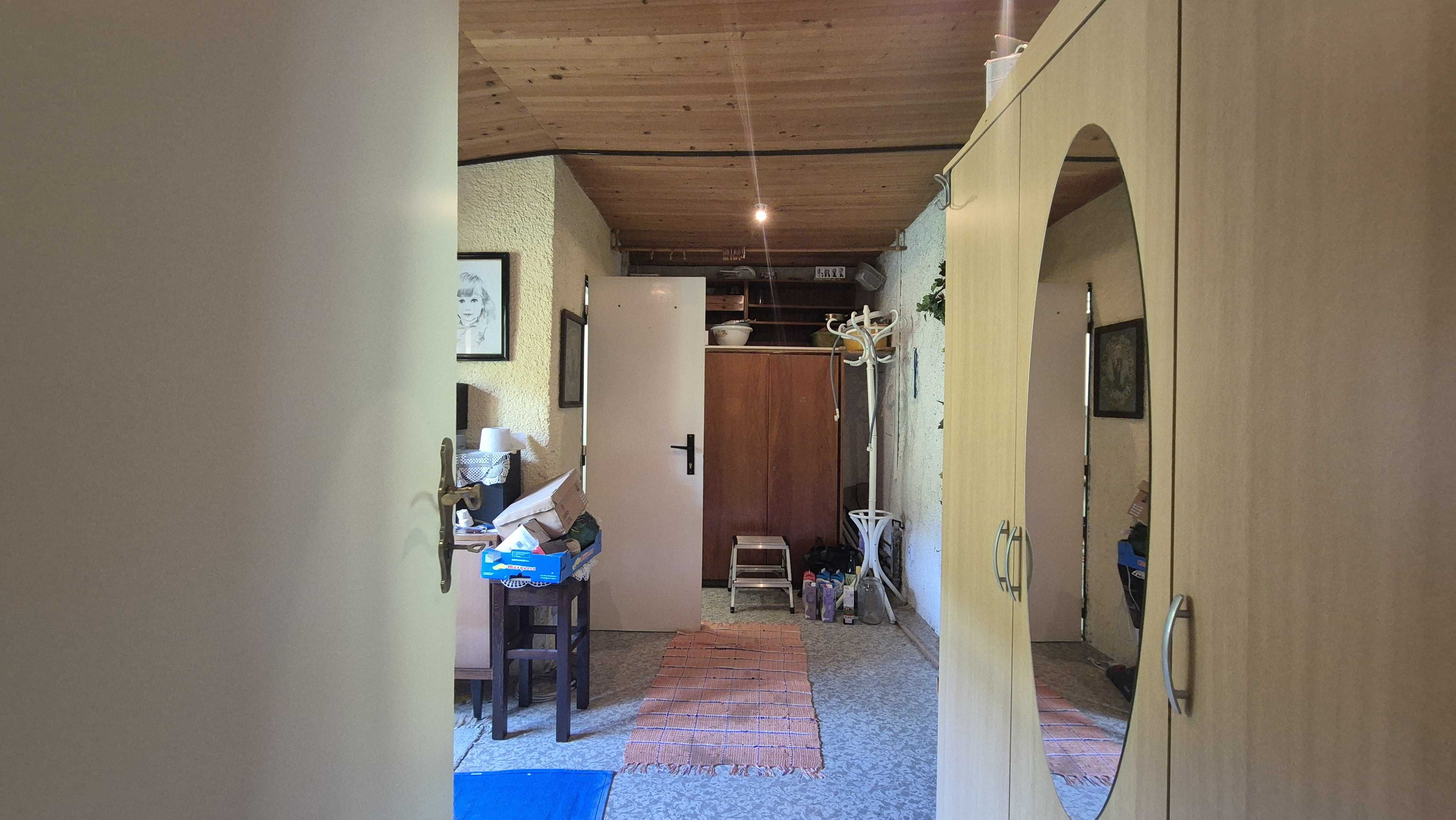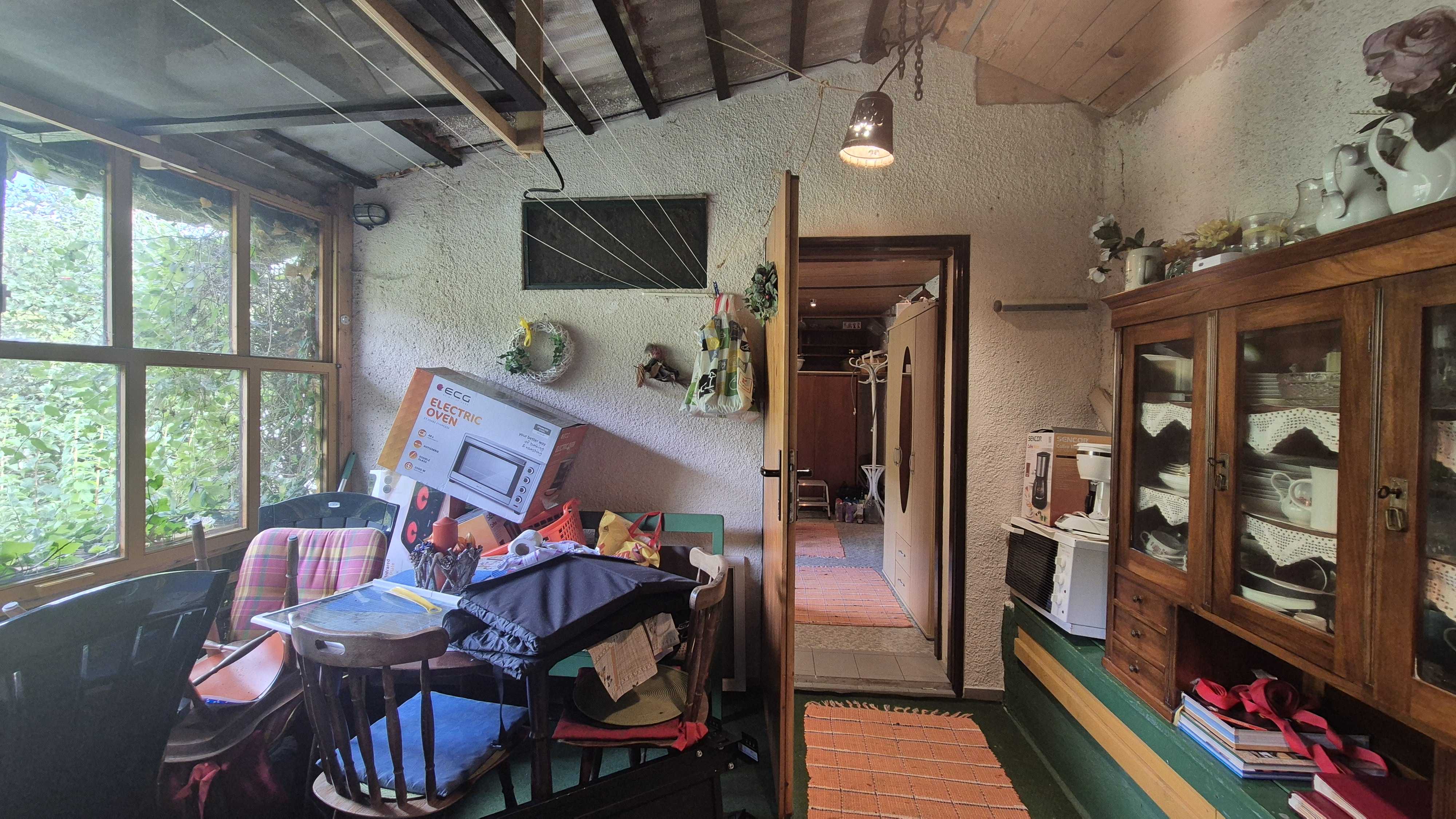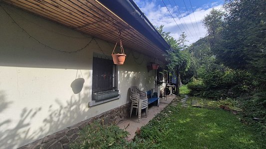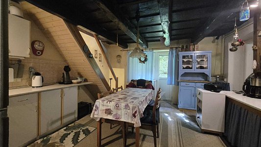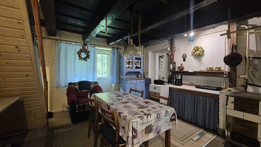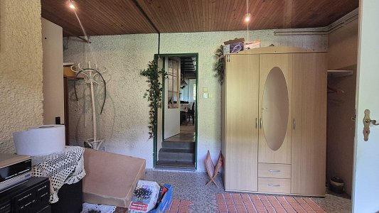 Druhý dom, ktorý je súčasťou ponuky, má vstupnú chodbu a prechod do veľkej miestnosti. Tento dom v súčasnosti slúži ako sklad, čo ponúka možnosti pre rôzne využitie, či už na podnikanie alebo ako priestor na uskladnenie. Celková plocha pozemku je 805 m2, pričom pozemok je svahovitý, čo pridáva na jeho atraktivite a ponúka krásne výhľady na okolitú prírodu.
