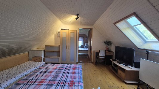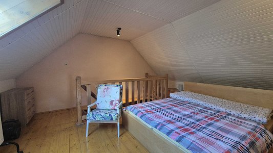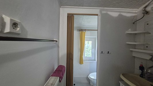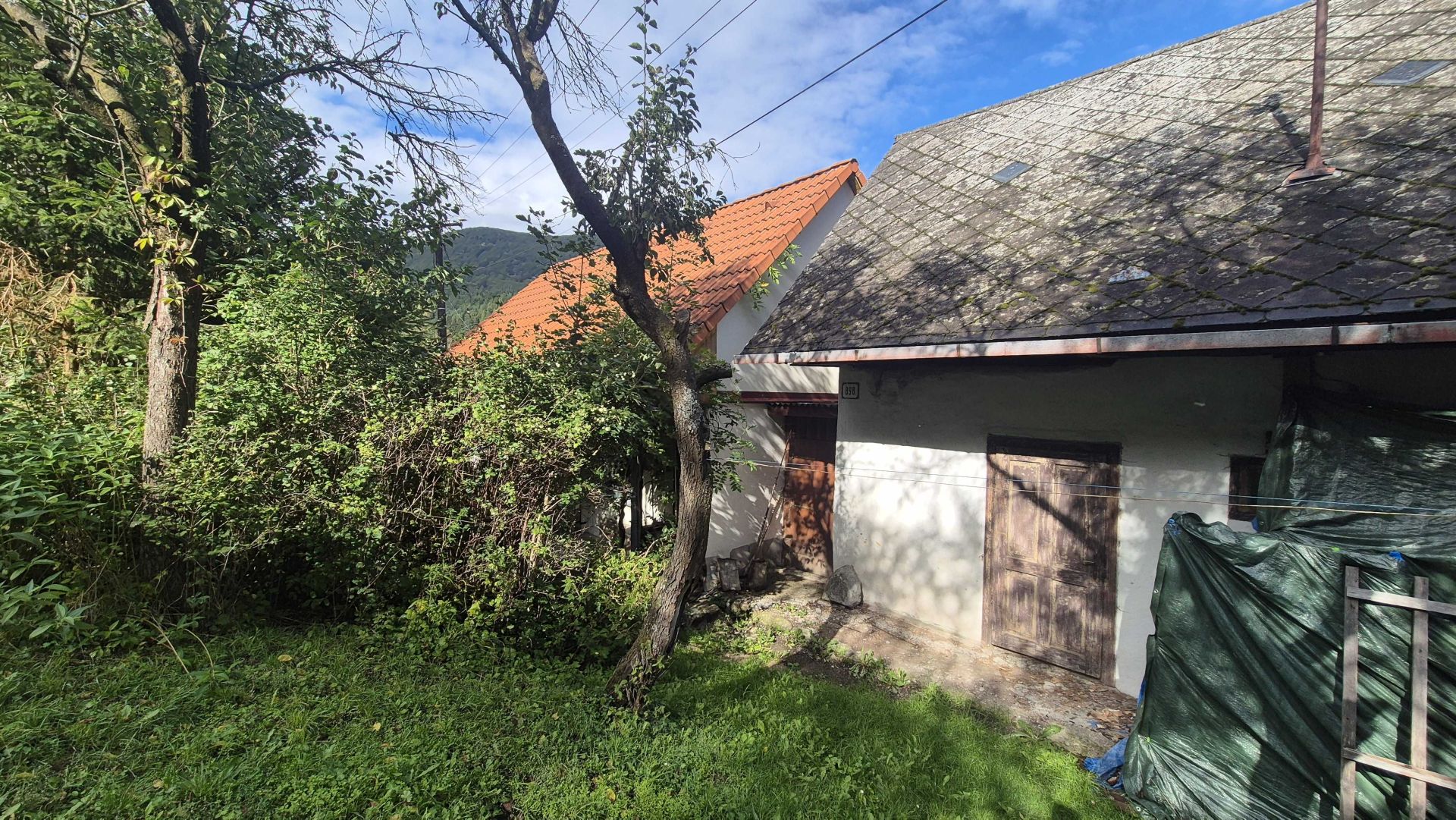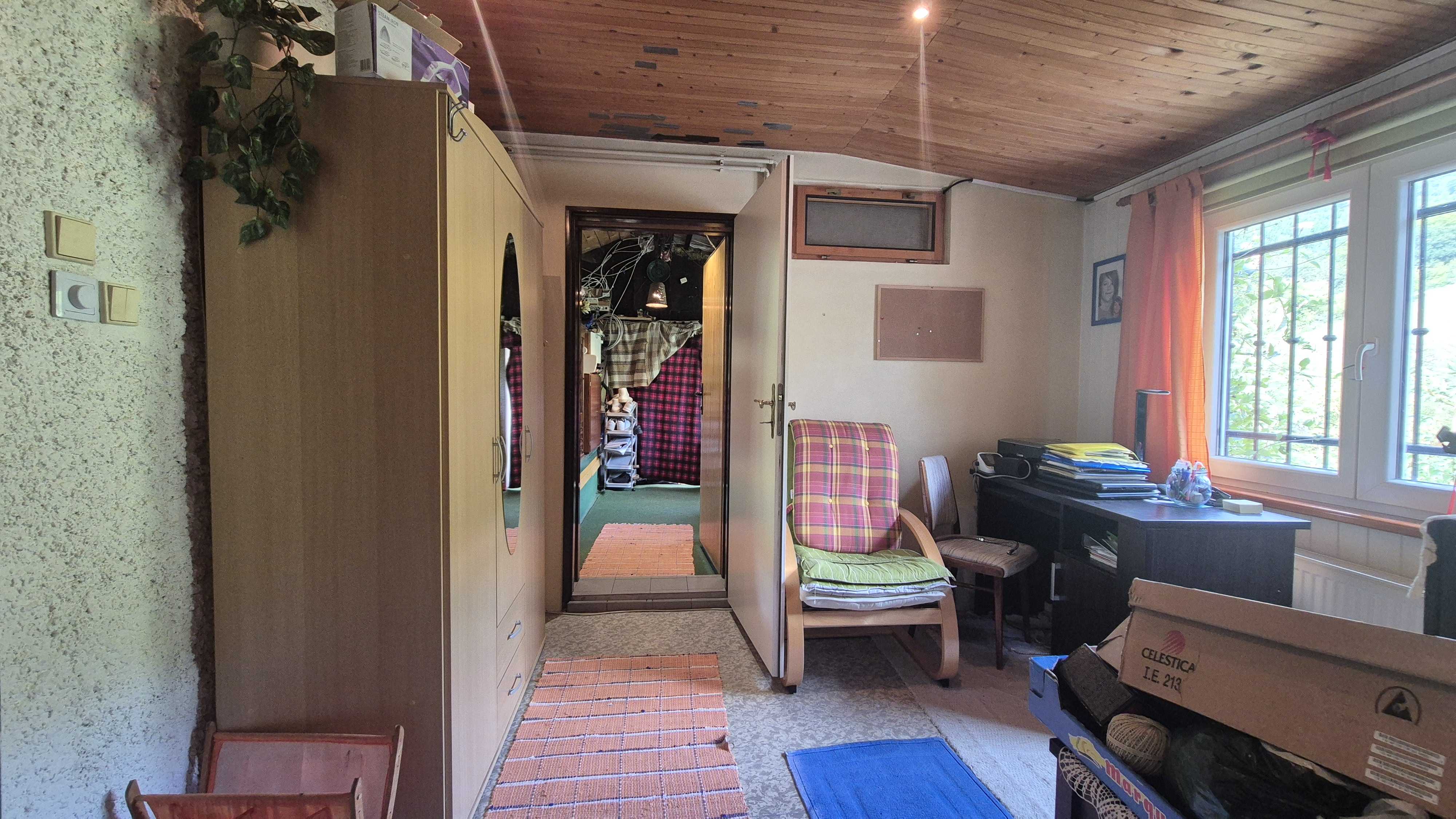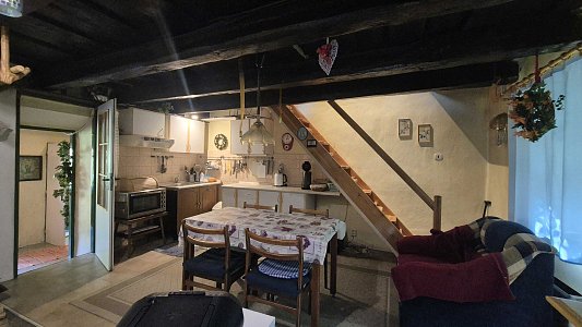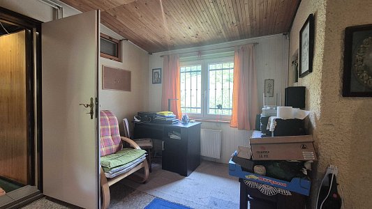 Druhý dom, ktorý je súčasťou ponuky, má vstupnú chodbu a prechod do veľkej miestnosti. Tento dom v súčasnosti slúži ako sklad, čo ponúka možnosti pre rôzne využitie, či už na podnikanie alebo ako priestor na uskladnenie. Celková plocha pozemku je 805 m2, pričom pozemok je svahovitý, čo pridáva na jeho atraktivite a ponúka krásne výhľady na okolitú prírodu.